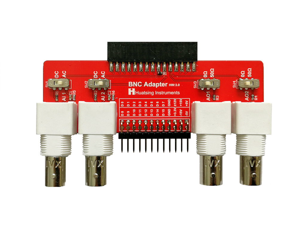 HA-BNC01轉(zhuǎn)接模塊可以讓插針接口形式的多功能口袋儀器連接標(biāo)準(zhǔn)示波器表筆與同軸信號線,減小信號噪聲,提高了信噪比。轉(zhuǎn)接模塊上還配有AC/DC輸入耦合方式選擇開關(guān)(配合HPI-1000口袋儀器使用時(shí)無需選擇,DC/AC由示波器界面上的DC/AC檔位開關(guān)決定)以及0Ω/50Ω輸出阻抗匹配選擇開關(guān)(配合HPI-1000口袋儀器使用時(shí)請選擇0Ω默認(rèn)檔)。邏輯分析儀及電源通道轉(zhuǎn)接出2x12針的雙排插針接口。