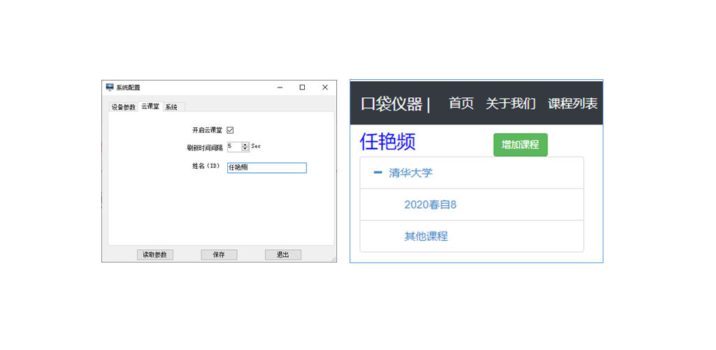 華清科儀的口袋儀器系列產品都支持網絡功能,借助口袋儀器云平臺可以開設云實驗課堂。在云平臺上可以開設不同的實驗課程,每門課程可以由一位或多位教師進行遠程輔導。在云課堂中,學生的本地數據可以自動上傳到云端,指導教師可以在后臺監測這些數據,掌握學生實驗情況。云平臺還能自動統計分析學生做實驗的時間、時長、地點等數據供教師參考。