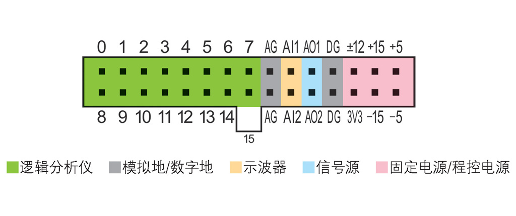 由示波器、信號源、邏輯分析儀、固定電源、程控電源等模塊構成,功能強大